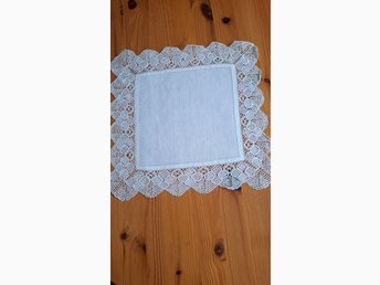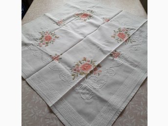Mormors allra finaste handbroderade bomullsduk 133 cm x 131 cm. Nyskick