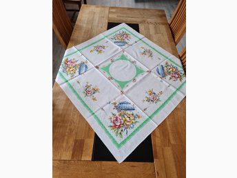 Vintage vacker bordsduk med blommotiv , av fin kvalitet.