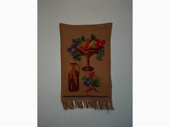 Retro väggbonad – handbroderad fruktskål & flaska (W054)