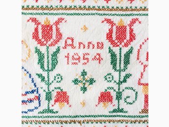 Vintage folkart väggbonad med korsstygn med nostalgi (Anna 1954)