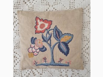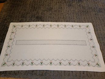 Broderad Duk med Blommor. Färgglad. Handarbete. Hantverk.