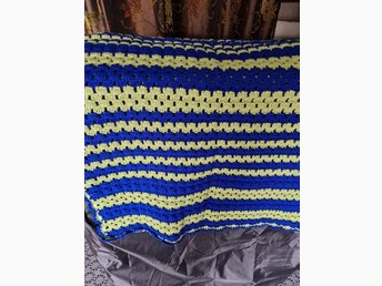 Handvirkad Pläd i Blått och Grönt 70x140 cm