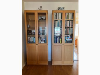 2 st Bokhylla i trä med vitrindel från KA & söner; "KA 72 skåp 739"