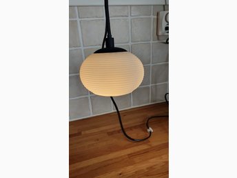 Pendel / fönsterlampa med vit glaskupa och svart textil sladd inkl led lampa