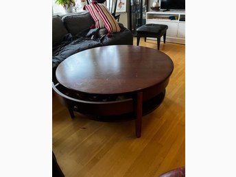 Runt soffbord med lådor