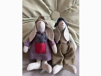 Påsk Kaniner handgjorda dockor tyg 2 st