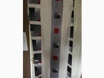 gardinlängder 4 st + 1 st kappa, mönstrade i rött vitt,grått,svart ,