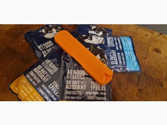 Praktisk klämma för att tömma portionspåsar