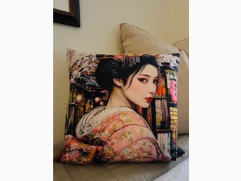 Dekorativ kuddfodral med asiatiskt motiv