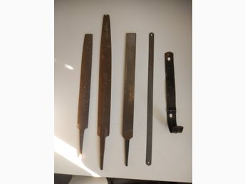 Diverse äldre verktyg filar trä såg Milford väggkrok