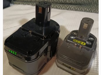 Två Ryobi Batterier 9Ah ersättningsbatteri och ett ONE+ 1.3Ah