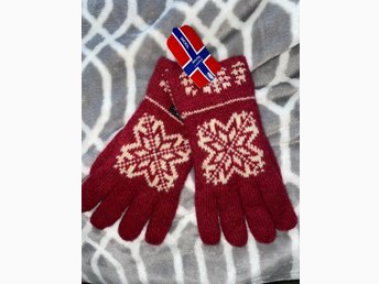 Mössa och handskar i ull, röd