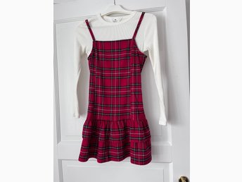 Rutig klänning med vit tröja - H&M - Storlek 152