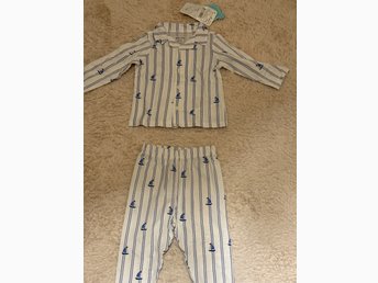 Randig pyjamas med båtar, storlek 6/9 månader