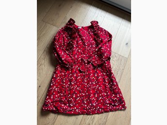 Röd klänning med blommotiv från Polarn & Pyret Strlk 122/128