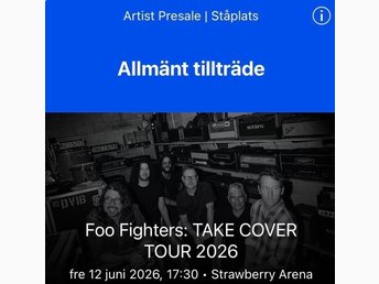 Två stycken ståplatsbiljettter till Foo Fighters: TAKE COVER TOUR 2026