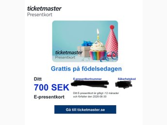 Ticketmaster Presentkort 700 SEK, digitalt
