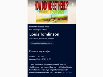 Louis Tomlinson konsertbiljetter 2 stycken
