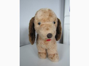 ÄLDRE STOR STOPPAD HUND**60-tal**37 cm hög**TEDDY**SÅ CHARMIG**VINTAGE**RETRO
