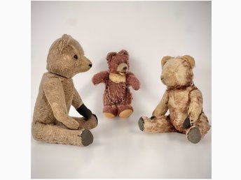 Antika halmfyllda teddybjörnar med leder och klämma i magen, samlarobjekt