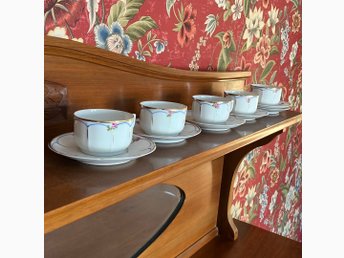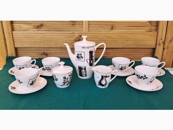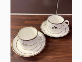 2 Tekoppar/kaffekoppar med fat och assiett samt sockerskål. TCM