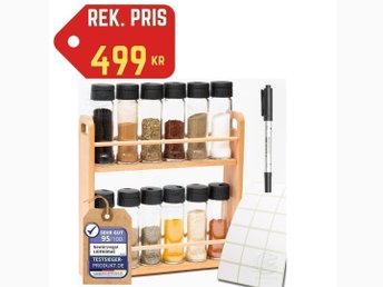 NYTT Eleganta Bokträ Kryddhylla •12x105ml Glasburkar •Två Våningar •Nypris 499kr