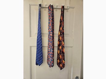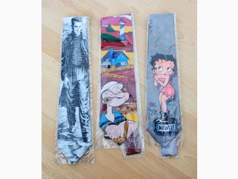 Oanvända slipsar med James Dean, Karl-Alfred och Betty Boop motiv
