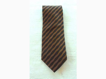 SLIPS I POLYESTER TVÄR RANDIG I SVART O BRUNT OANVÄNT