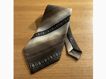 ÄKTA FENDI - Slips Siden Silke Silk Beige Guld Logo Sidenslips Retro Vintage