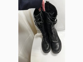 Svarta höga stövlar i fusk skinn med snörning och dragkedja stl 37 23 cm