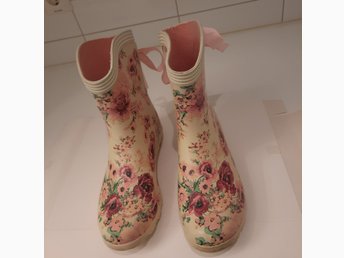 Gummi Stövlar med blommiga mönstrar, till regndagar. I perfekt skick!