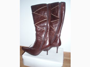 Bruna LEDER STÖVLAR med naturell päls inuti. Högklackat. Mycket bra skick!