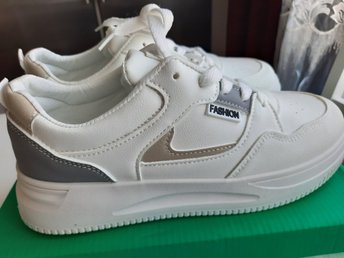 Nya Vita sneakers med grå detaljer. Strl 39. Oanvänt! I NY-skick!