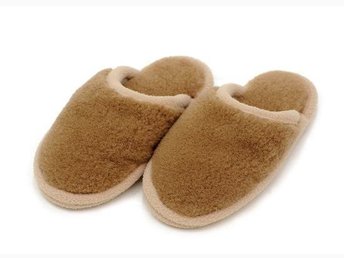 Bruna flip - flop tofflor av kamelull , storlek 42-43