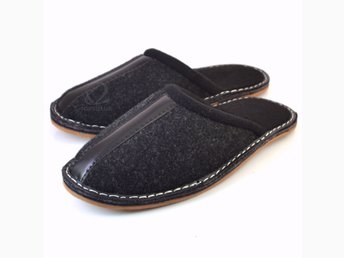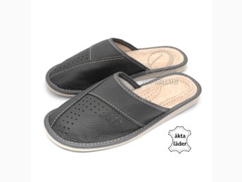 Nya Grå Tofflor Herrskor Toffel Skor Skinn Läder Sandaler Inneskor Stl 43 +MER