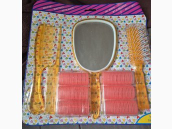 Retroliknande Skönhetsset med spegel, borste, kam och papiljotter