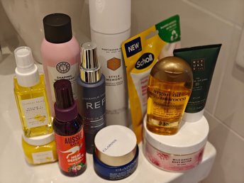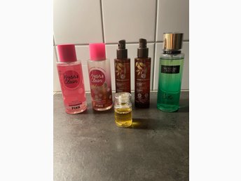 Bodymist Victoria Secret och hårolja från Yves Rocher och Olaplex