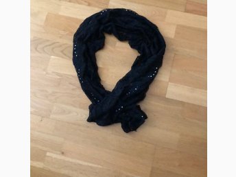 Stor tunn sjal/halsduk. Märke: Pinto como Italy. Färg: svart och silverglittrig.
