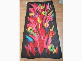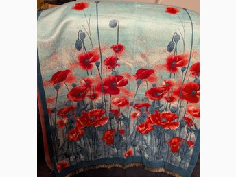 Vacker halsduk/sjal dekorerad med vallmomönster. Oanvänd! 65x180cm.