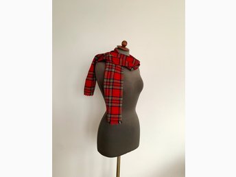 Röd scarf rutig ull halsduk vintage 70-tal retro