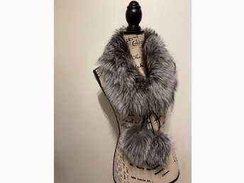 REA! NYSKICK LYXIG PÄLSKRAGE M EXTRASTORA PÄLSTOFSAR ÄKTA SILVERRÄV PÄLS