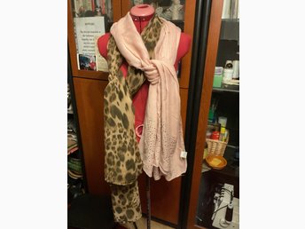 Två riktigt trevliga snygga långa halsdukar, leopard, och en rosa
