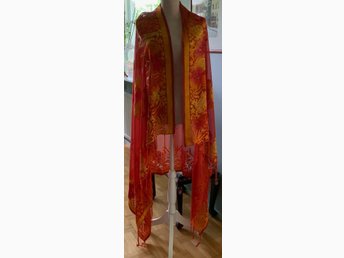 Handtryckt sidensjal i crêpe de chiné kvalitet