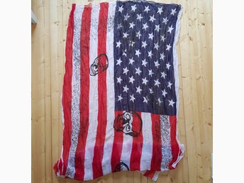 Sjal, scarf med tryck av USA:s flagga och dödskallar. Mått: 180x90 cm. Se bilder