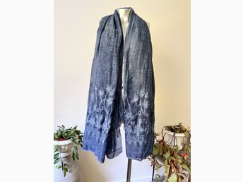 Havsblått scarf / handgjord naturligt färgämne / konstsilke (Rayon)