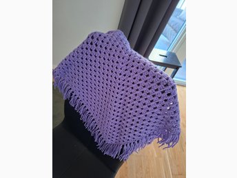 Söt Handvirkad barn/vuxen sjal i lila med Fransar - Ny