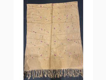 100% kashmir. Elegant stor Halsduk. Brodyr i guldfärg. 200x70 cm. Ny.