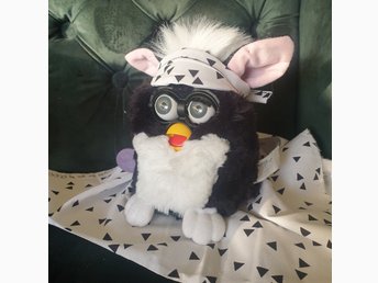 Handgjord solskydd för 1998 Furby återvunnet material vita svarta trianglar