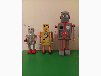 3st Plåtrobotar Retro - Lilliput, Sparking Robot & Atomic Robot Man