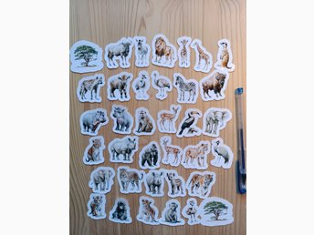 36 st safari Klistermärken med djurmotiv